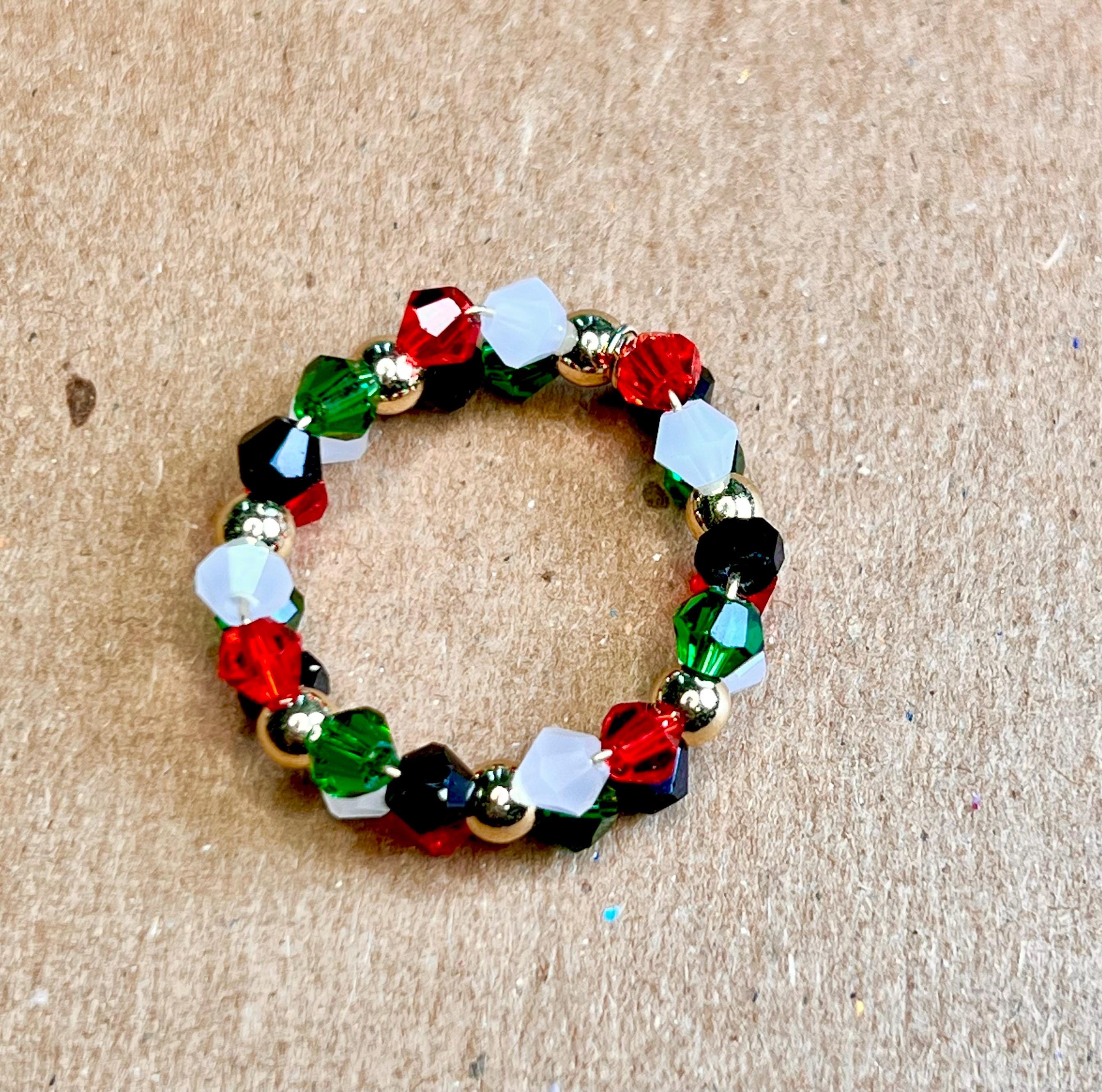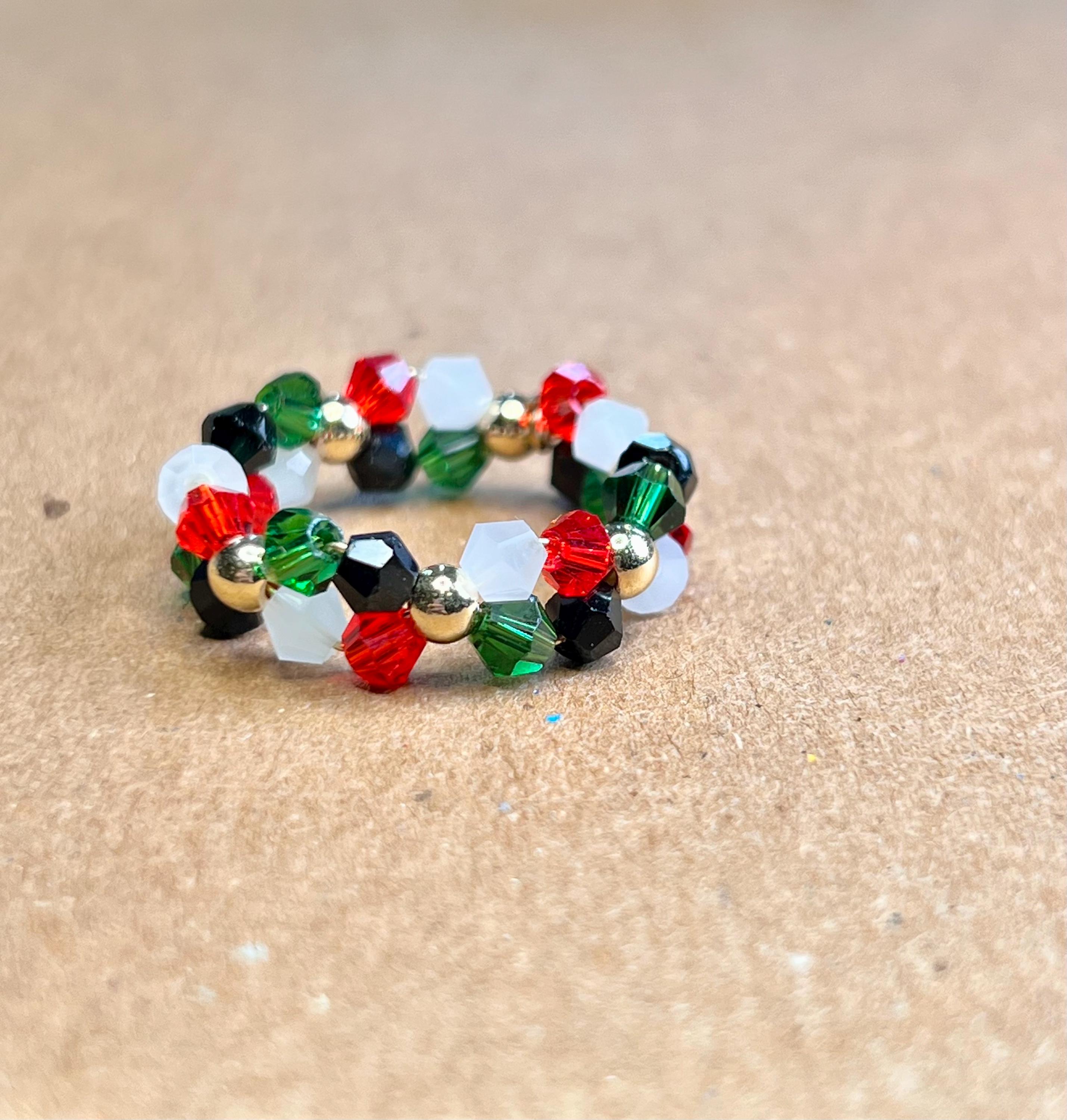 *made with red, black, white, and green crystal glass bicone beads and gold/stainless steel spacers