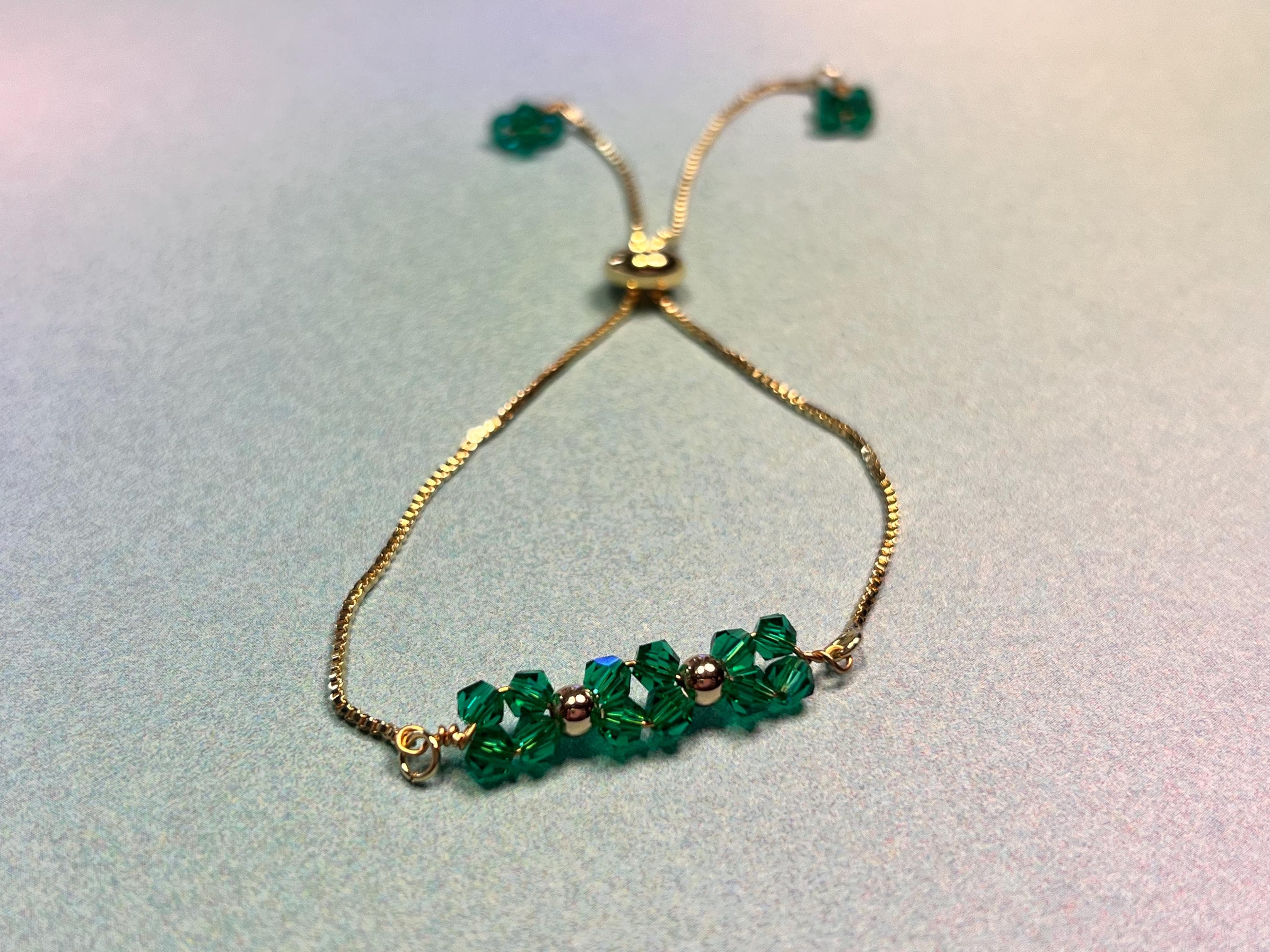 These bracelets are a part of my mini collection of crystal Bicone gems in an assortment of colors so that you can choose your favorite(s)!
